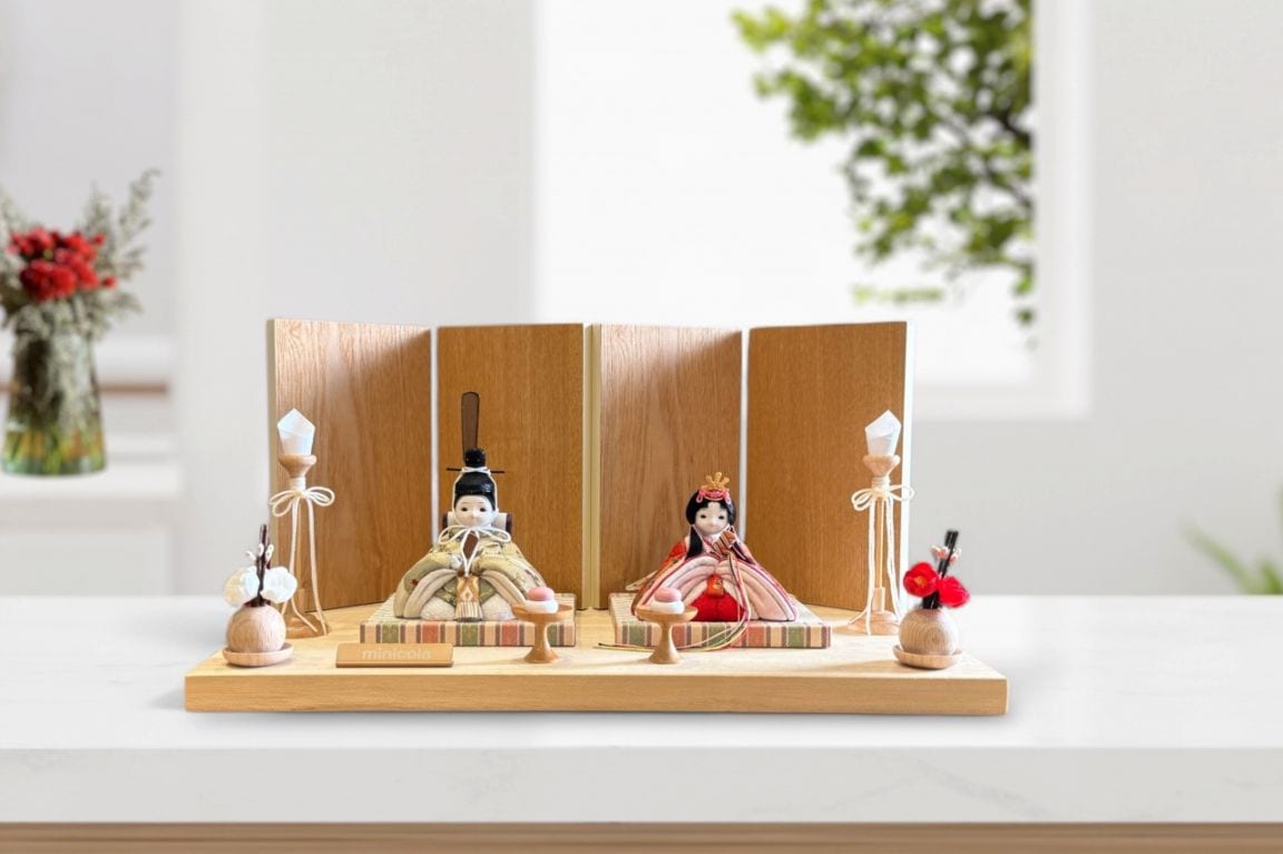 rico恵茉(えま)木目込み親王飾り雛人形 木台 木ナチュラル屏風