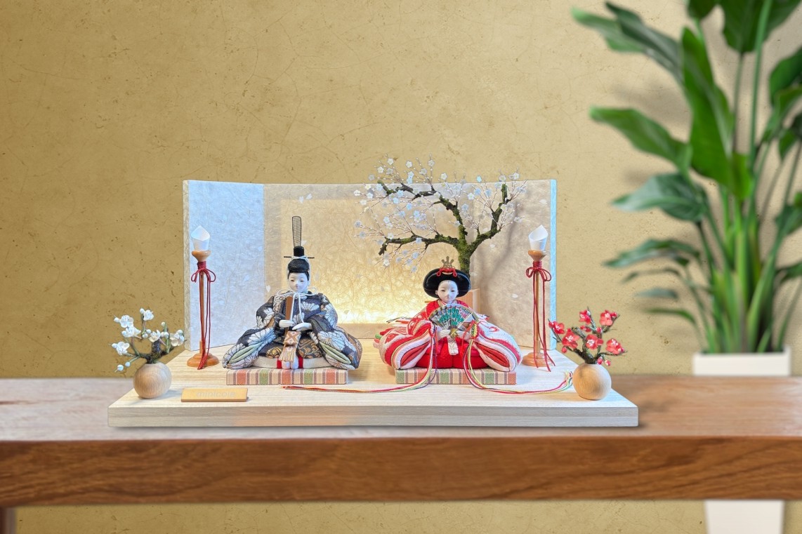 rico-粋-きさき 木目込み親王飾り雛人形 木台 しだれ桜屏風