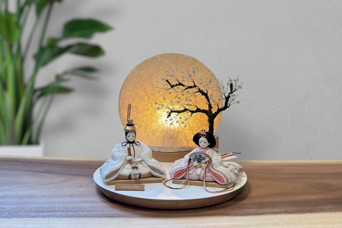 rico-粋-さくら 木目込み親王飾り雛人形 白丸木台 雪花丸型照明