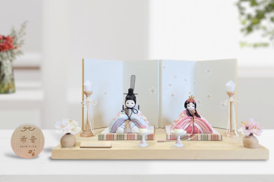 rico沙羅(さら)木目込み親王飾り雛人形 木台 白布地に小桜屏風