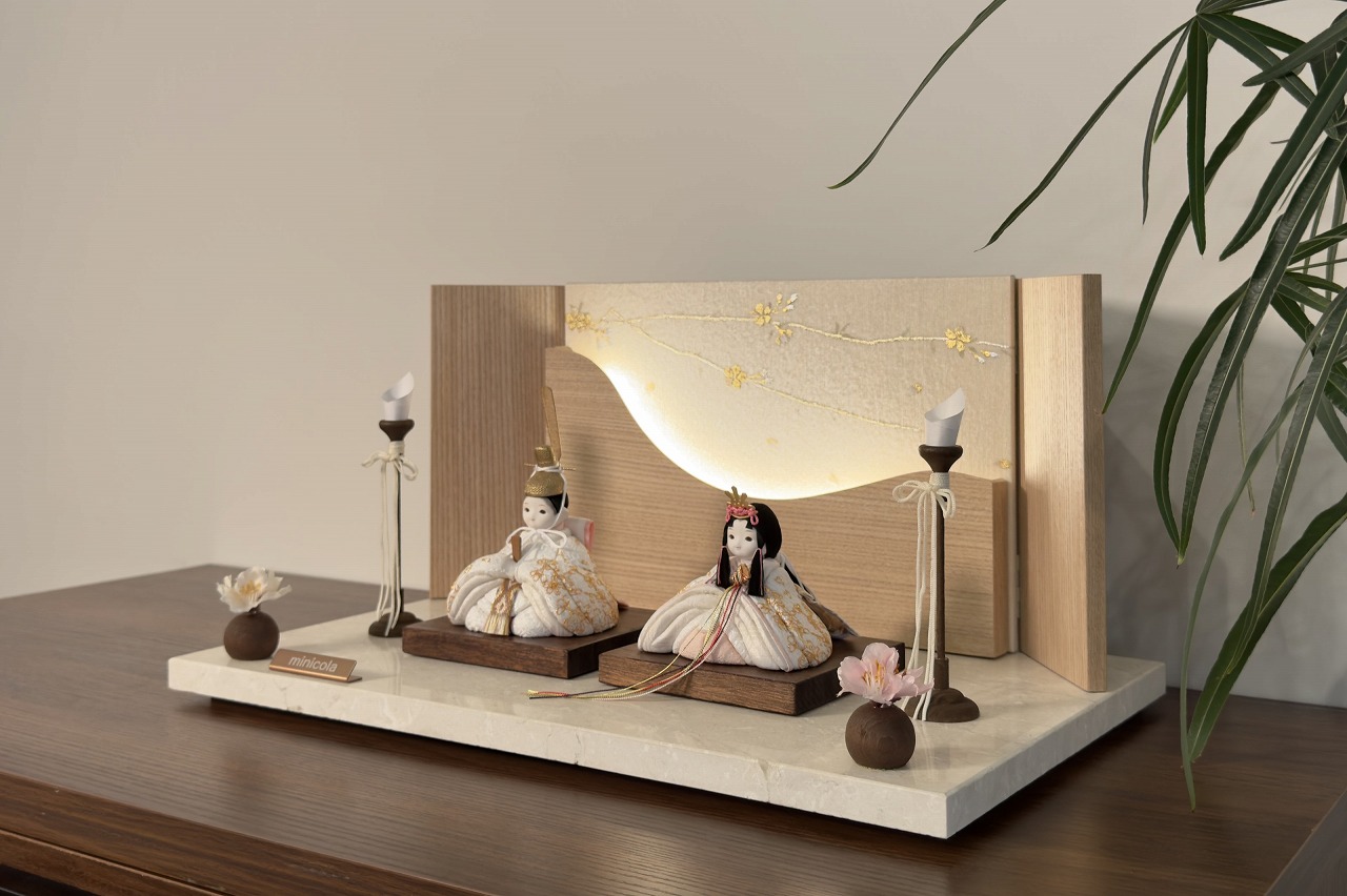 rico一花(いちか)木目込み親王飾り雛人形 マーブル台レクタ デライト屏風