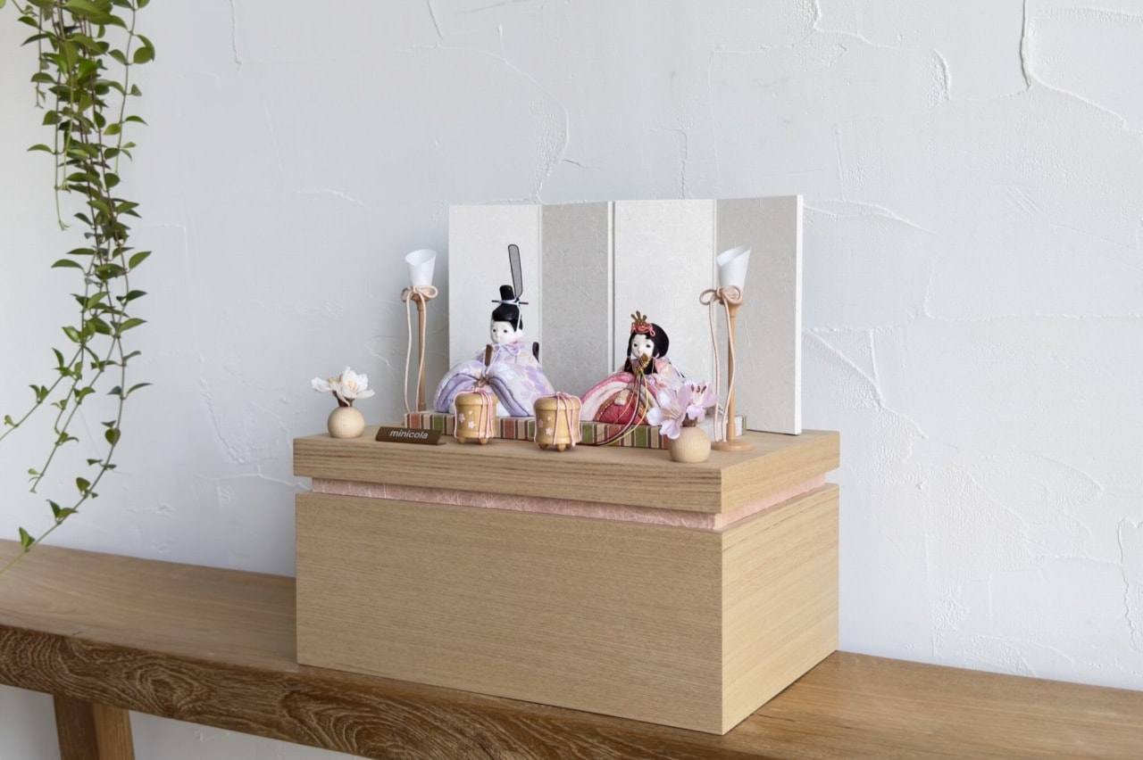 rico茉誉(まほろ)木目込み親王飾り雛人形 みにまる桐箱収納台 花紋屏風
