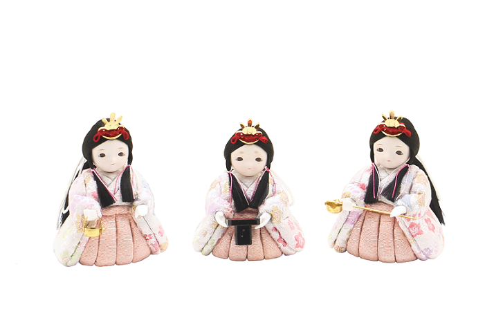 サイズ 立(左右2人)官女高さ約7.5cm 、座り(中央1人)官女高さ約7cm