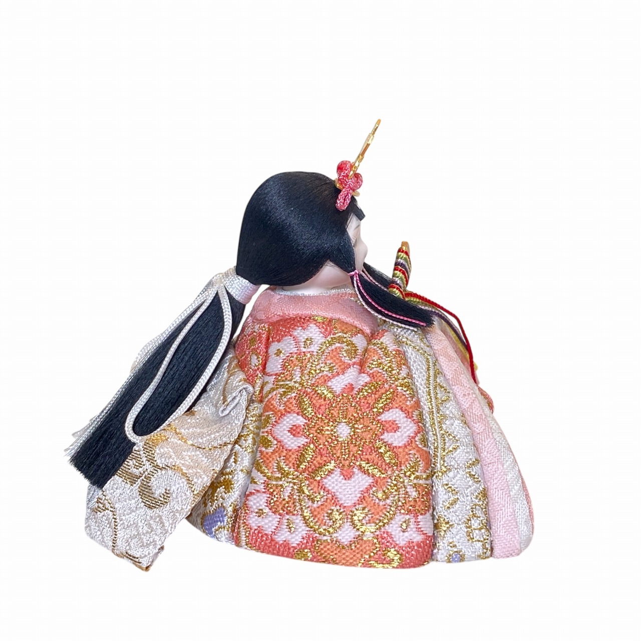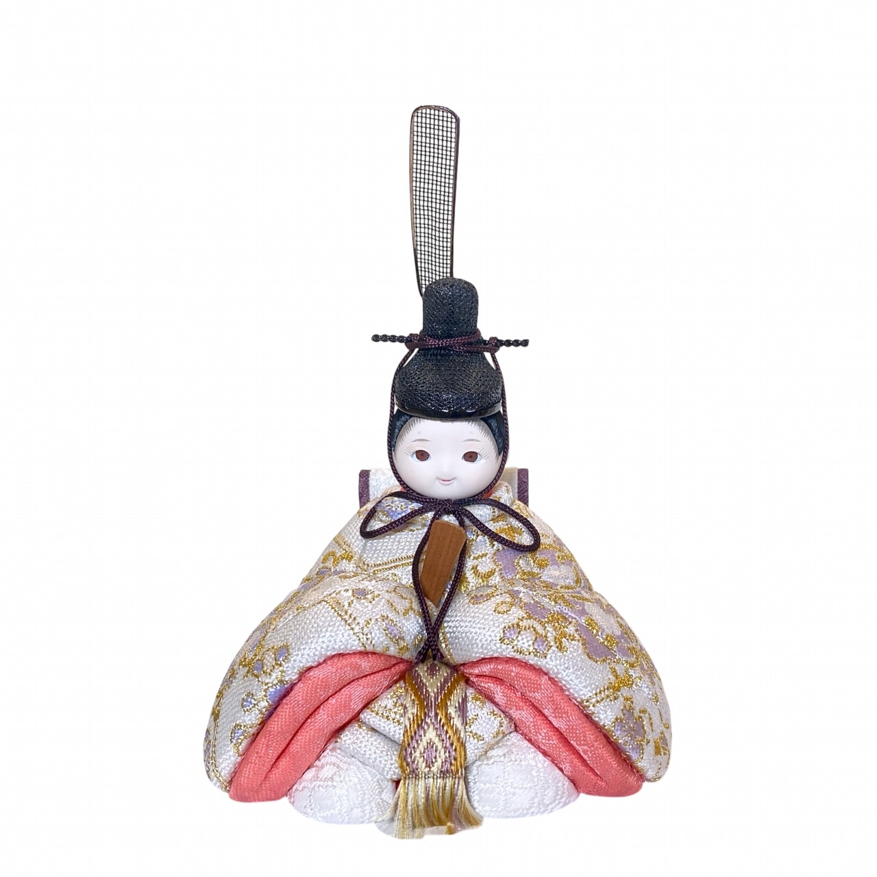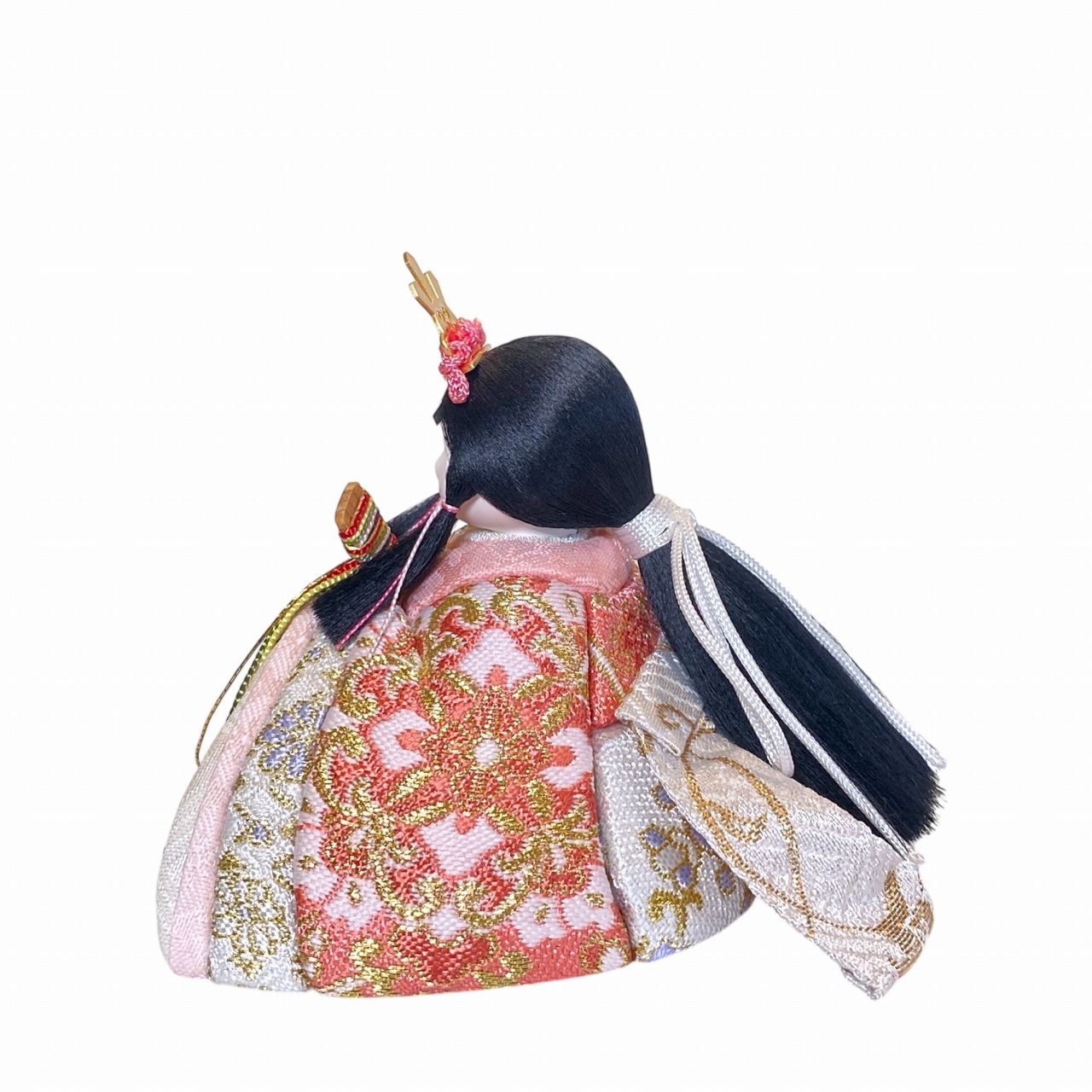 【インスタグラム掲載商品】小さな木目込み親王飾り雛人形 rico夢乃(ゆめの)金糸が織り込まれた、おそろいの菱紋模様のお着物を着たお雛様です。