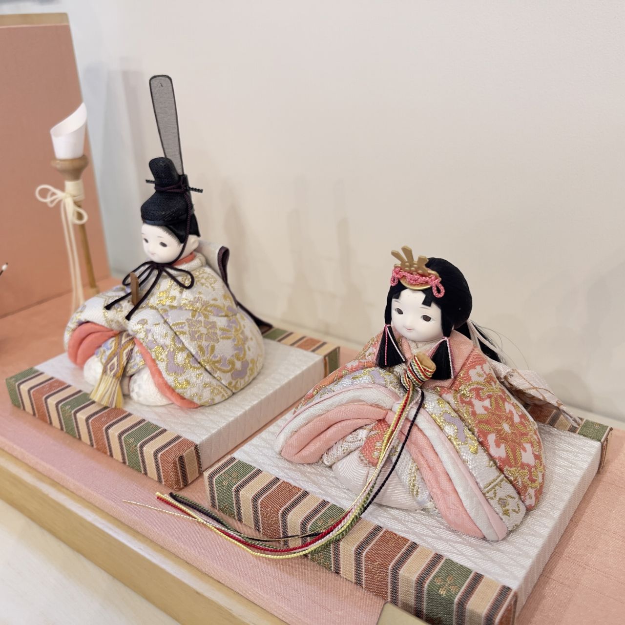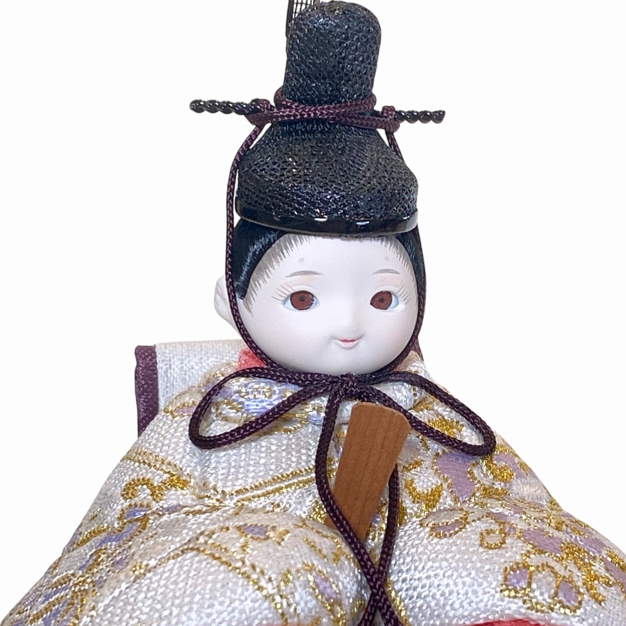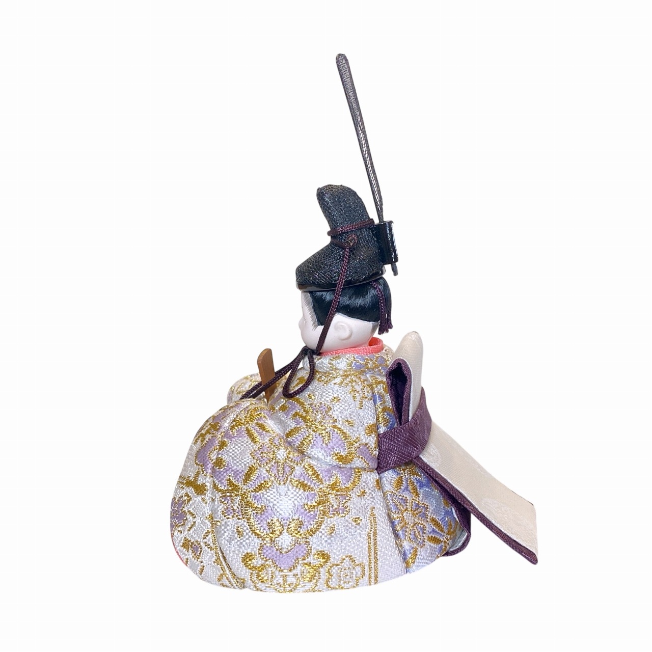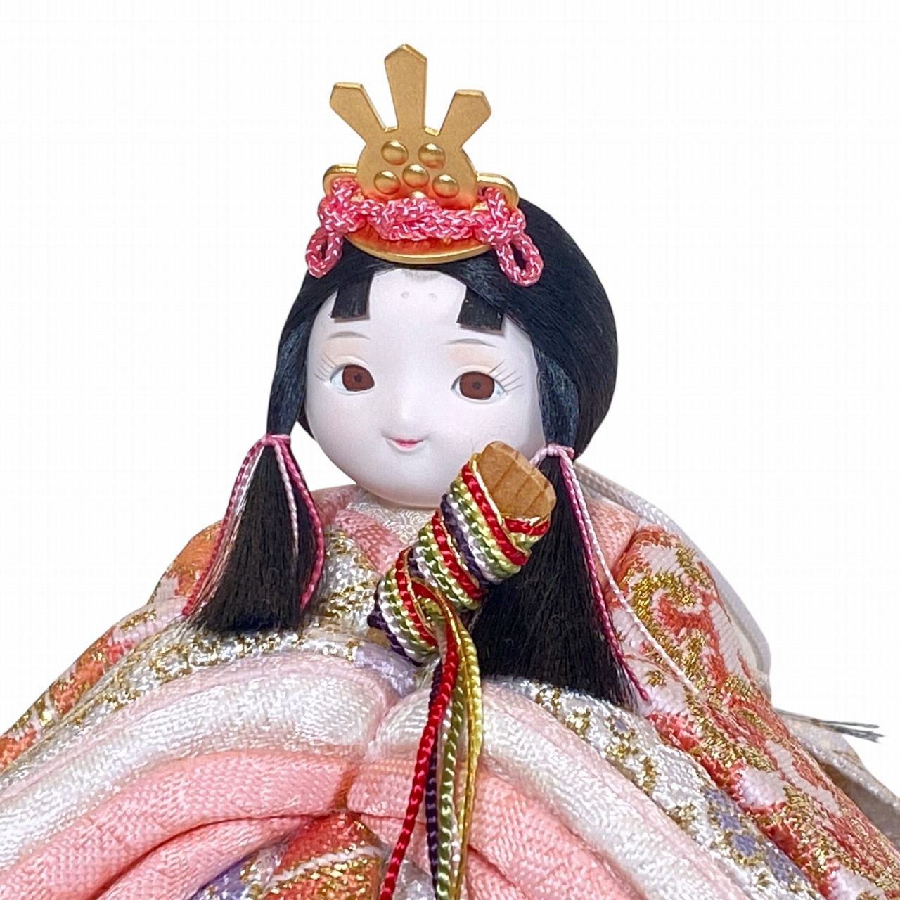 【インスタグラム掲載商品】小さな木目込み親王飾り雛人形 rico夢乃(ゆめの)金糸が織り込まれた、おそろいの菱紋模様のお着物を着たお雛様です。
