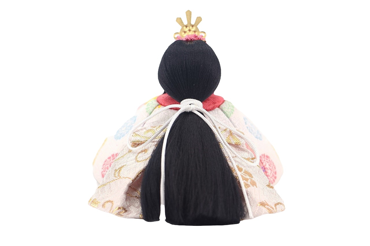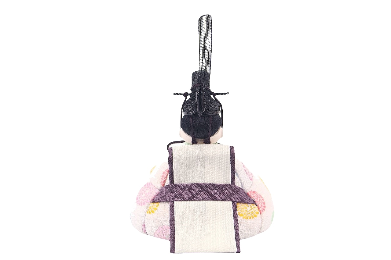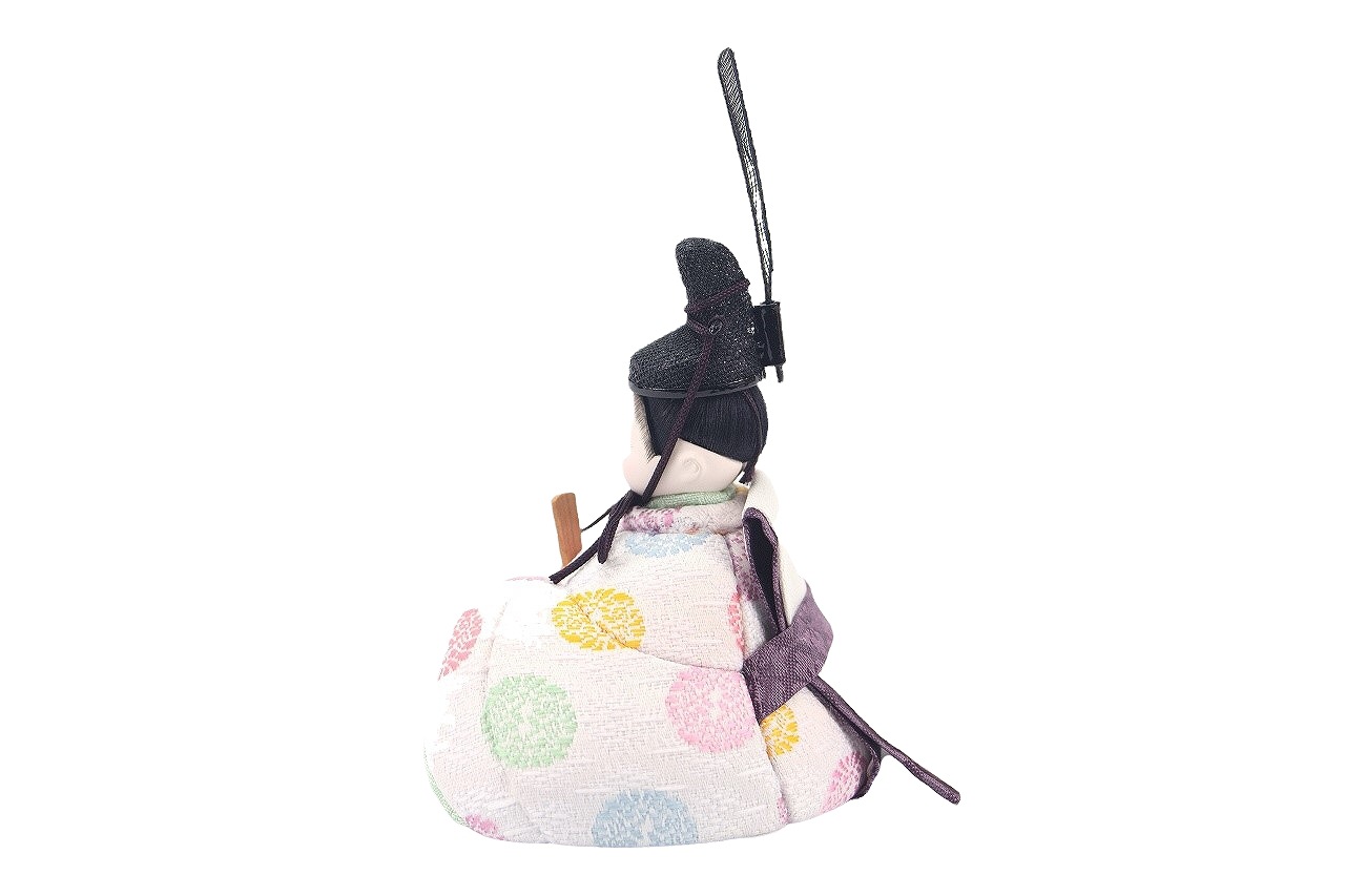 【インスタグラム掲載商品】小さな木目込み親王飾り雛人形。rico一色(ひいろ)白地におそろいの丸紋のお着物を着たお雛様です。