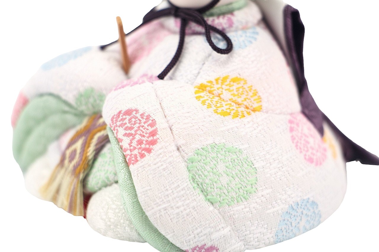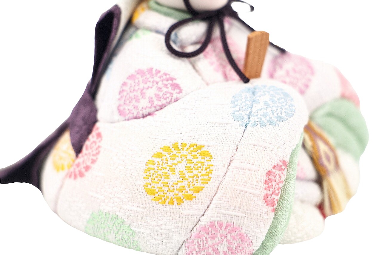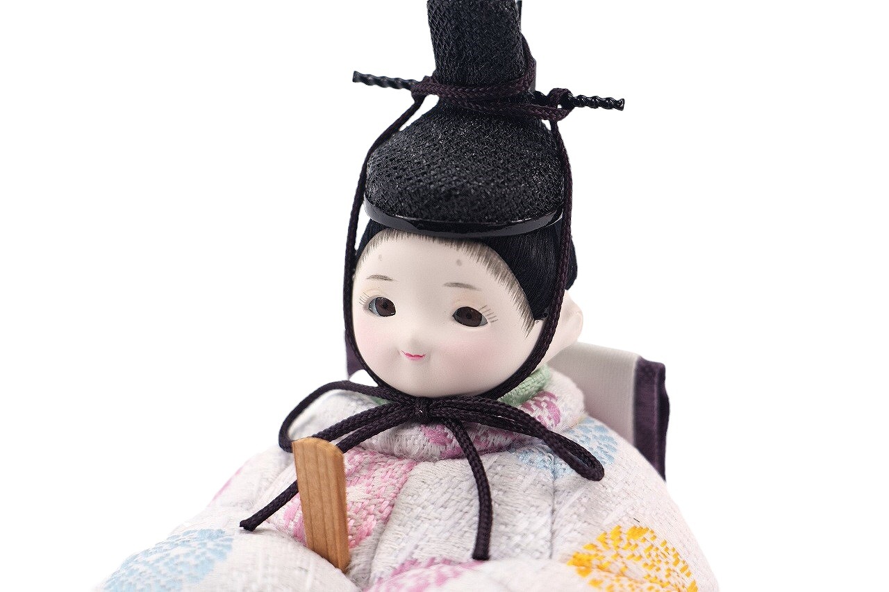 【インスタグラム掲載商品】小さな木目込み親王飾り雛人形。rico一色(ひいろ)白地におそろいの丸紋のお着物を着たお雛様です。