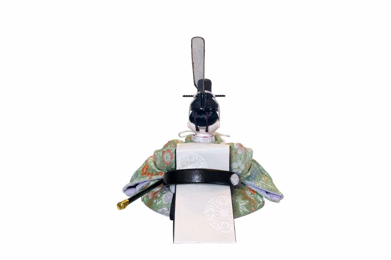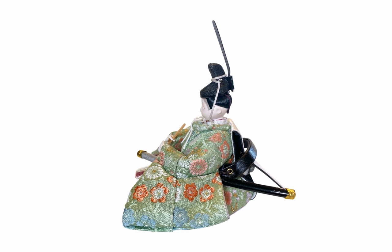 【インスタグラム掲載商品】小さな衣裳着親王飾り雛人形 coco常(ときわ)。優しい色合いの小花模様のお着物を着たお雛様です。