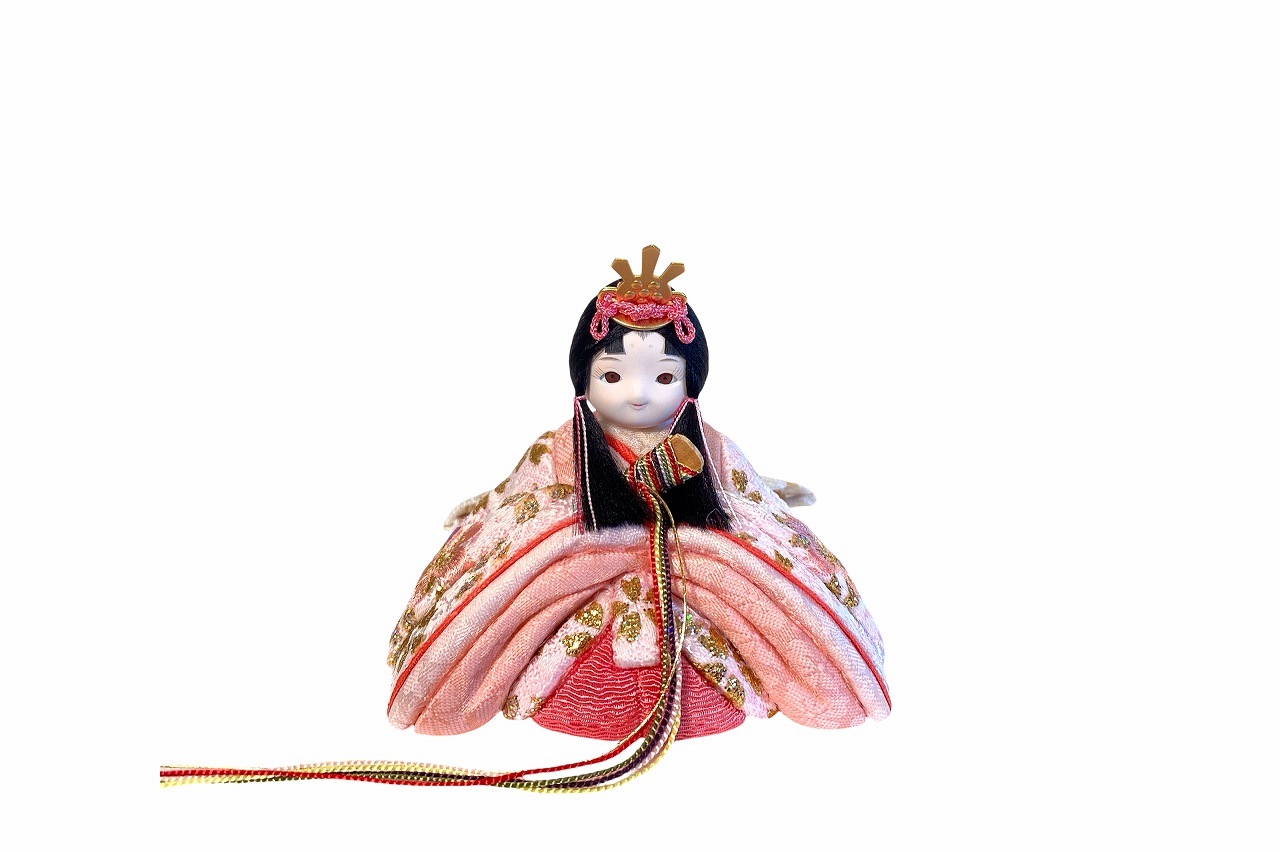 【インスタグラム掲載商品】小さな木目込み親王飾り雛人形 rico美優(みゆ)。キラキラした桜の花びら模様と、桜の刺繍をほどこしたお着物を着たお雛様です。