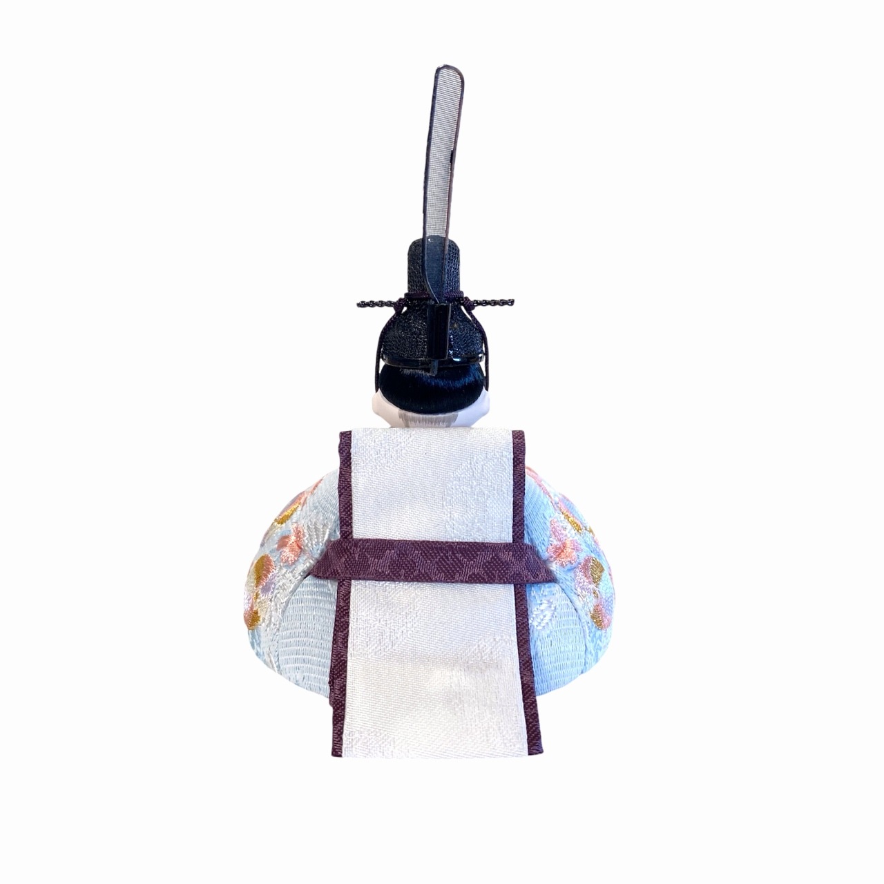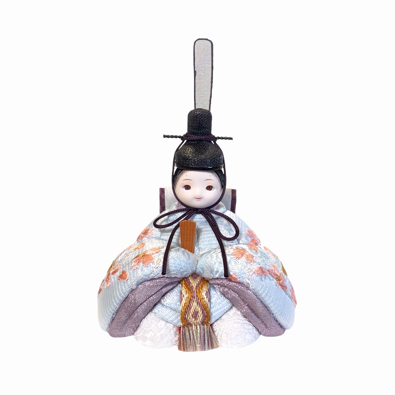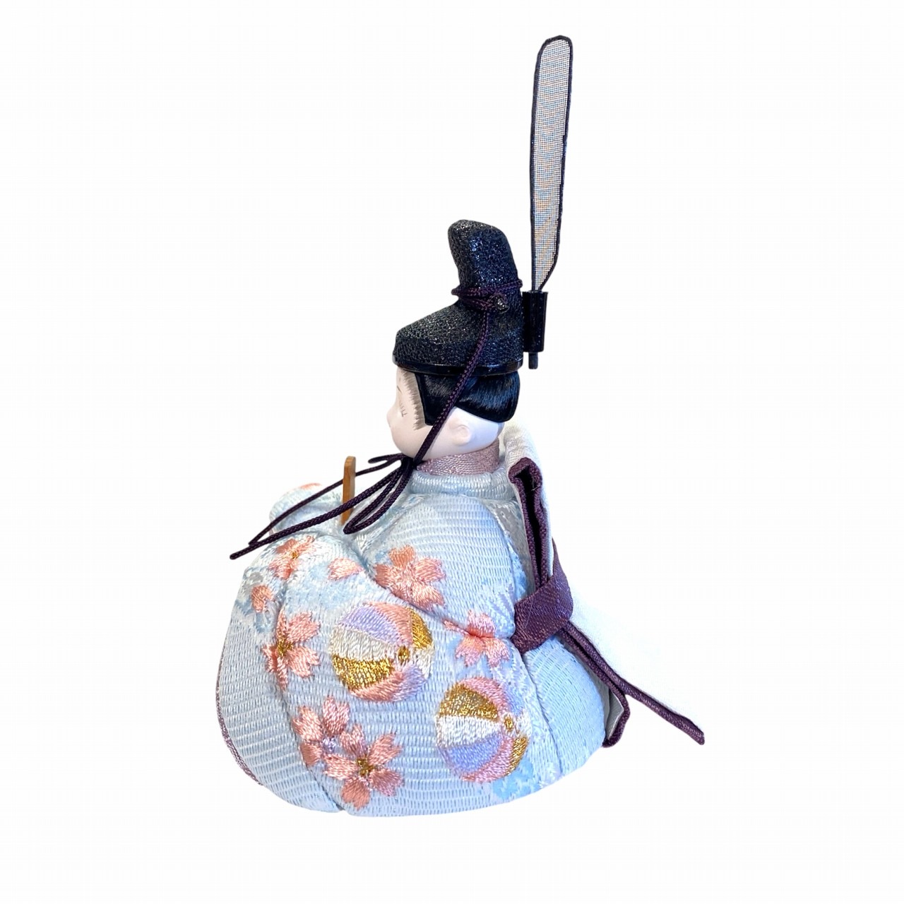 【インスタグラム掲載商品】小さな木目込み親王飾り雛人形。rico沙羅(さら)おそろいの桜と鞠の刺繍のお着物を着たお雛様です。鞠は長い糸で作られていることから「縁を結ぶ」「良縁に恵まれる」と考えられ、丸い形は「円満」「物事が丸く収まる」縁起のよい絵柄として古来より用いられてきました。 高岡塗の台は、上面が白、前面が淡いピンク色に塗分けられ、伝統文化を大切にしながらも、現代的な要素を取り入れたデザインです。