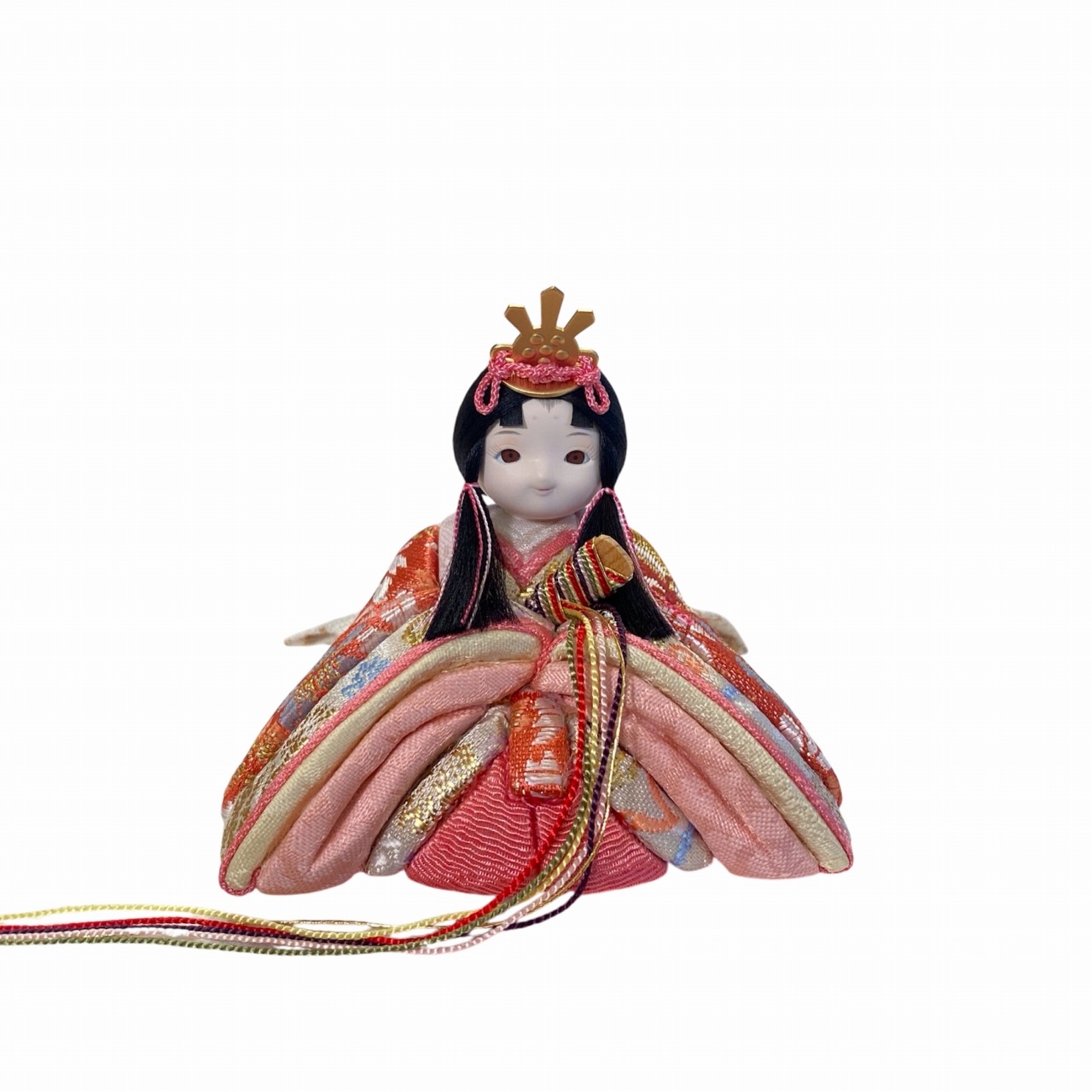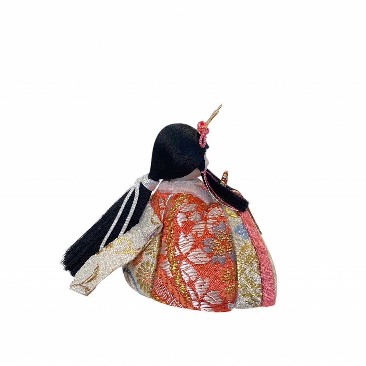 【インスタグラム掲載商品】小さな木目込み親王飾り雛人形。rico美琴(みこと)桜の花びらの柄で、人気の色味のお着物を着たお雛様です。