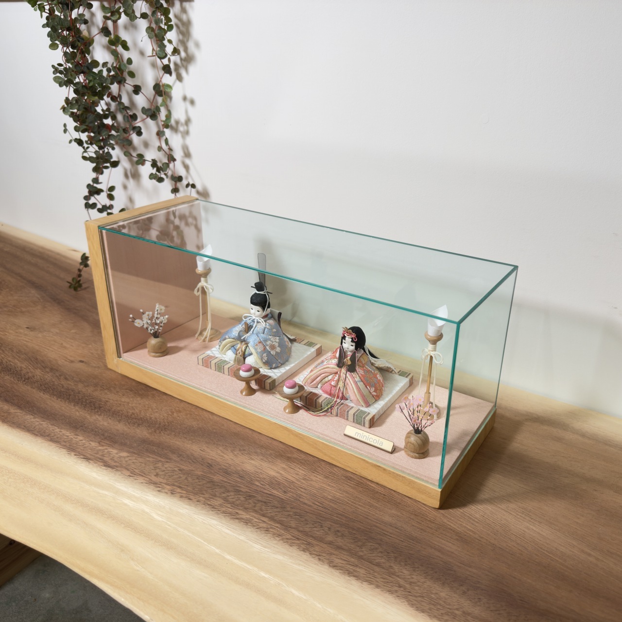 アクリルケース入りの、シンプルながらも可愛らしさと洗練さを兼ね備えたデザインで、お雛様の魅力を引き立てます。