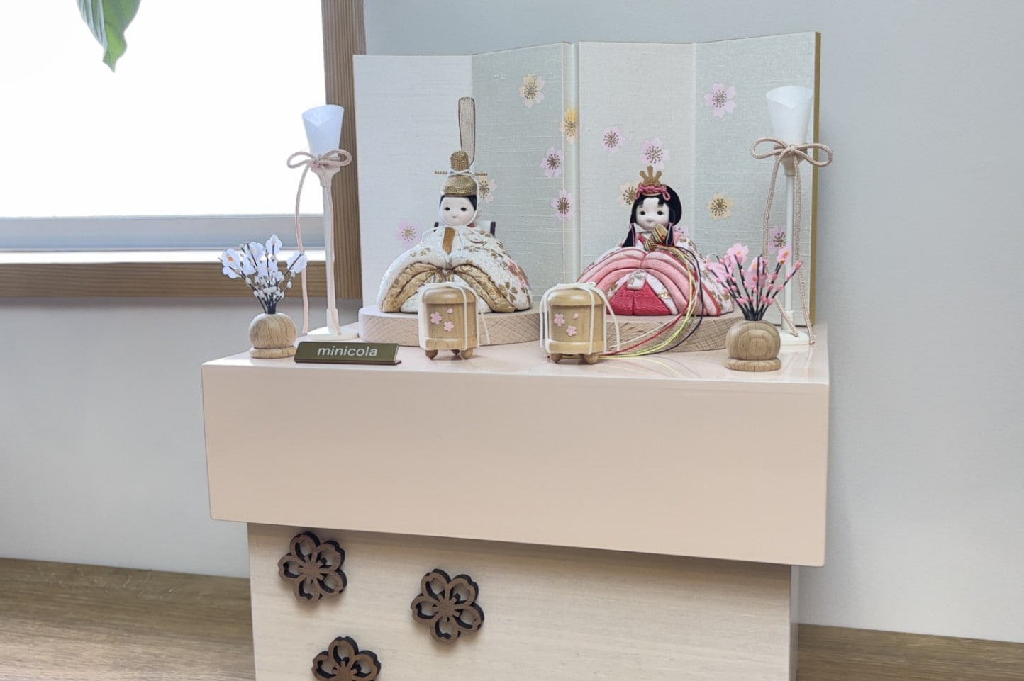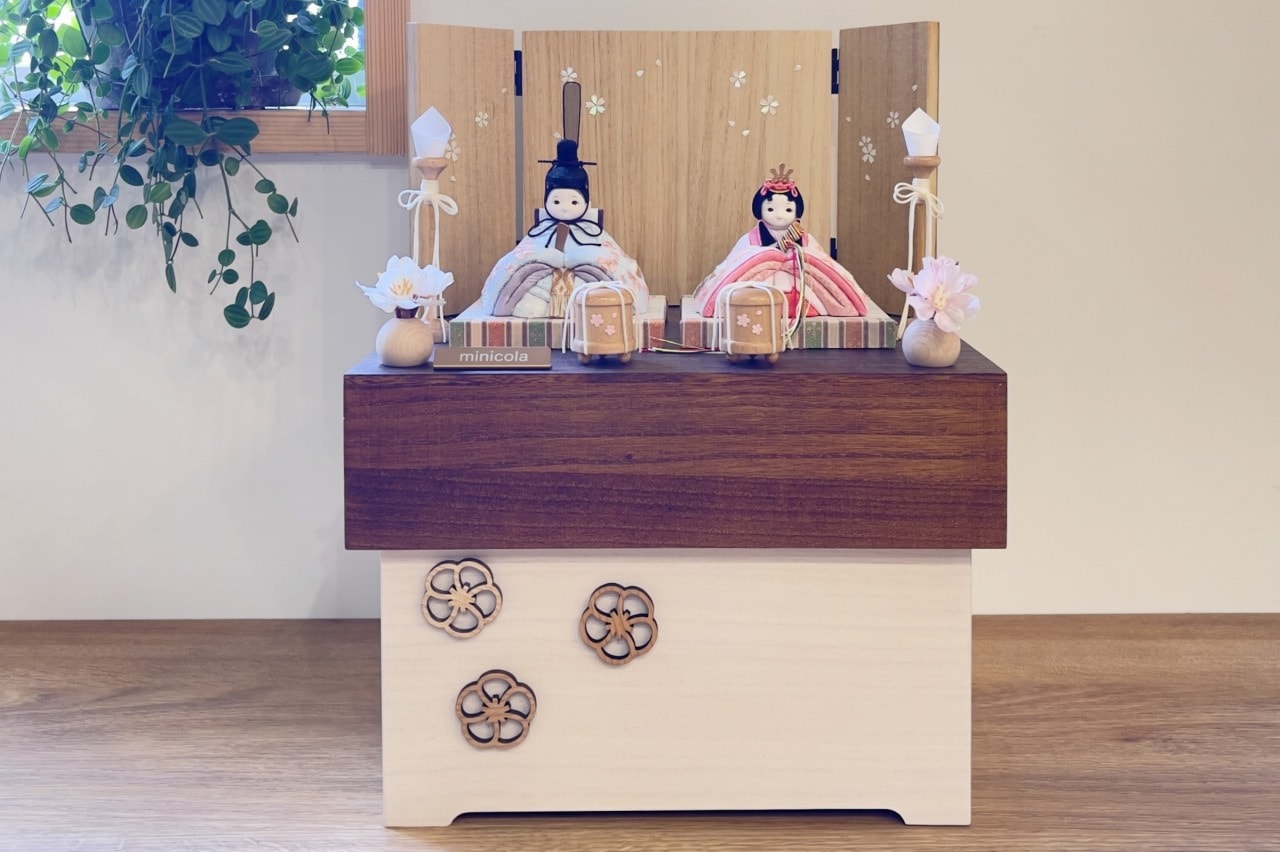 rico舞香(まいか)木目込み親王飾り雛人形 高岡塗台 亜麻色桜刺繍屏風