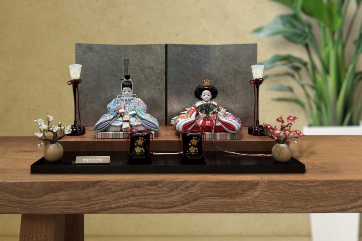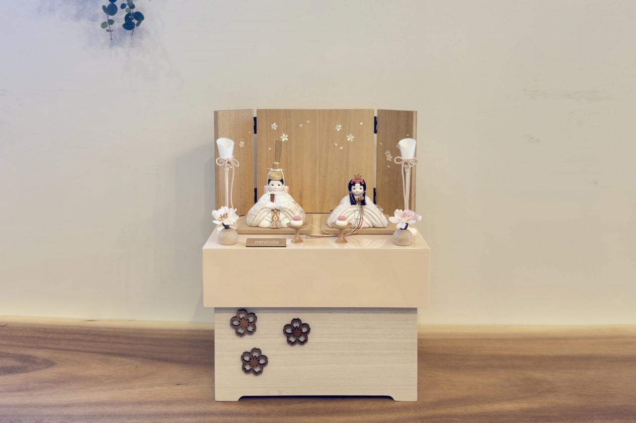 rico舞香(まいか)木目込み親王飾り雛人形 高岡塗台 金箔小桜蒔絵屏風