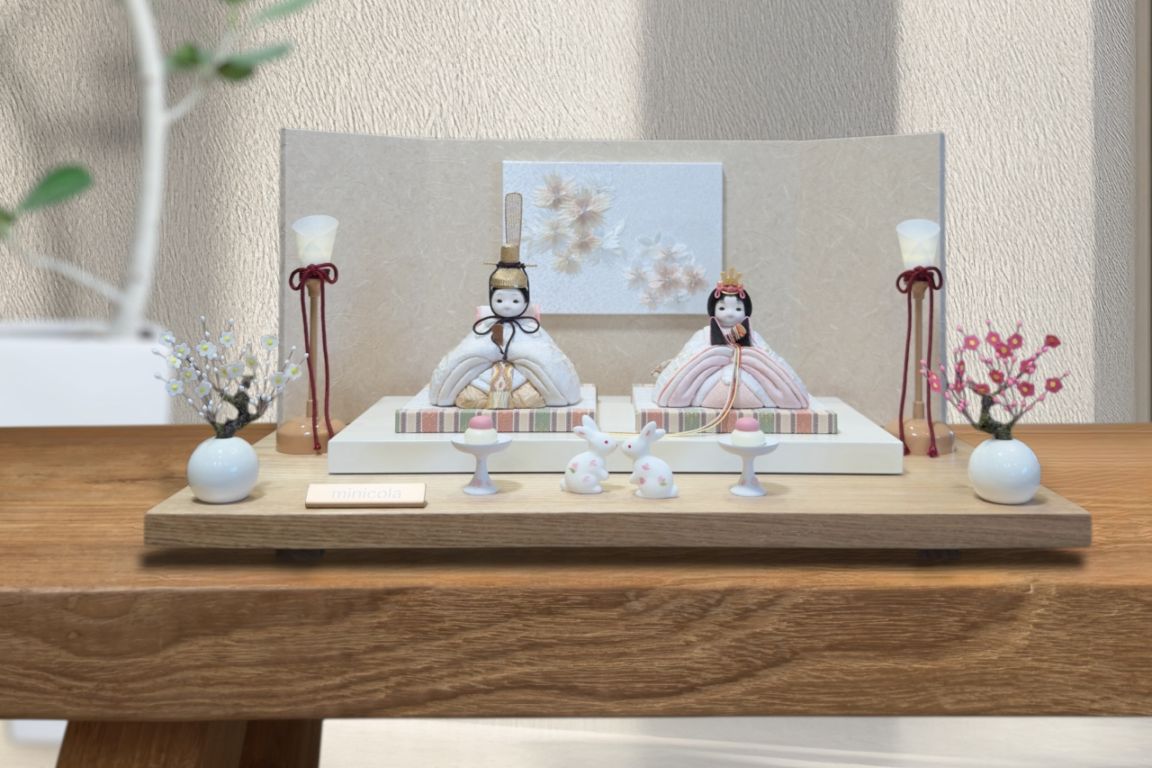 rico-粋-あかり 木目込み親王飾り雛人形 コンビネーション台 和光屏風