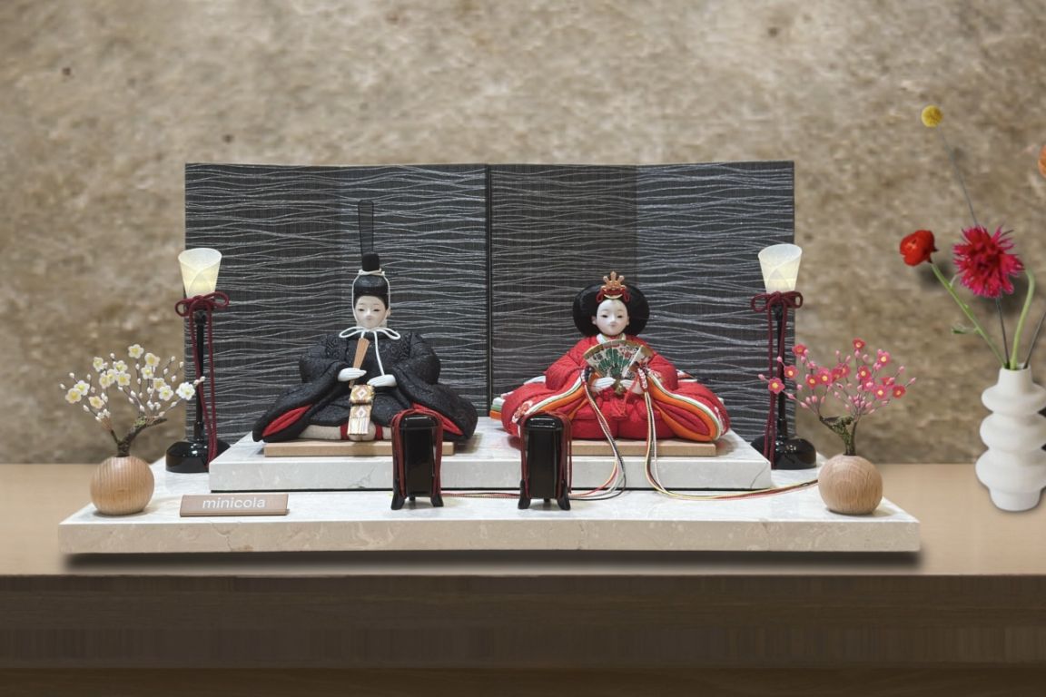 rico-粋-みやび 木目込み親王飾り雛人形 マーブルレクタステップ台 悠流屏風